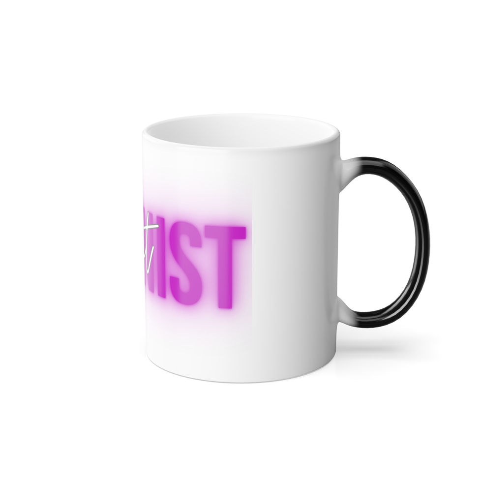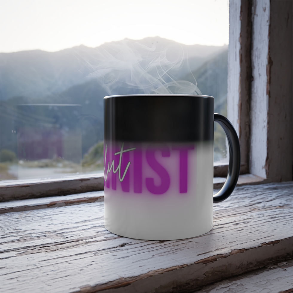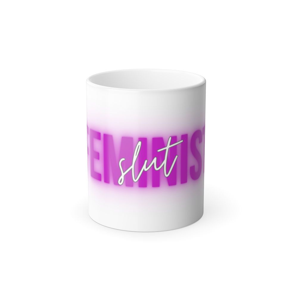 Have a hot cuppa and remind yourself of the powerful bitch you are! This ceremic cup is black on the oustide (white inside) when cold, but add some heat and "Feminist Slut" appears! It comes in one size – 11oz (0.33l) – plenty for that big morning cup of coffee.